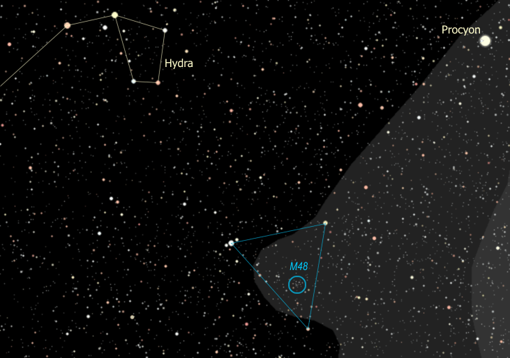 will find the Lost Star Cluster, M48. Charles Messier put this group on his
