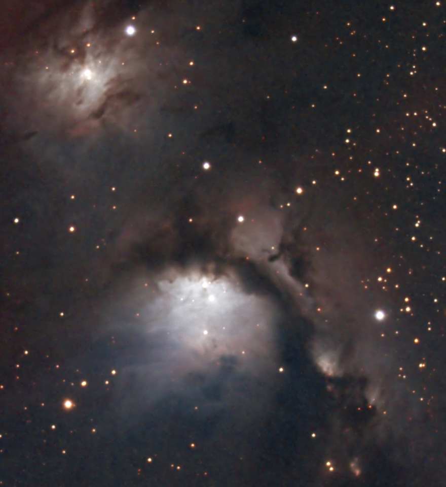 the light of those two stars you see in it. The Orion nebula, by contrast,