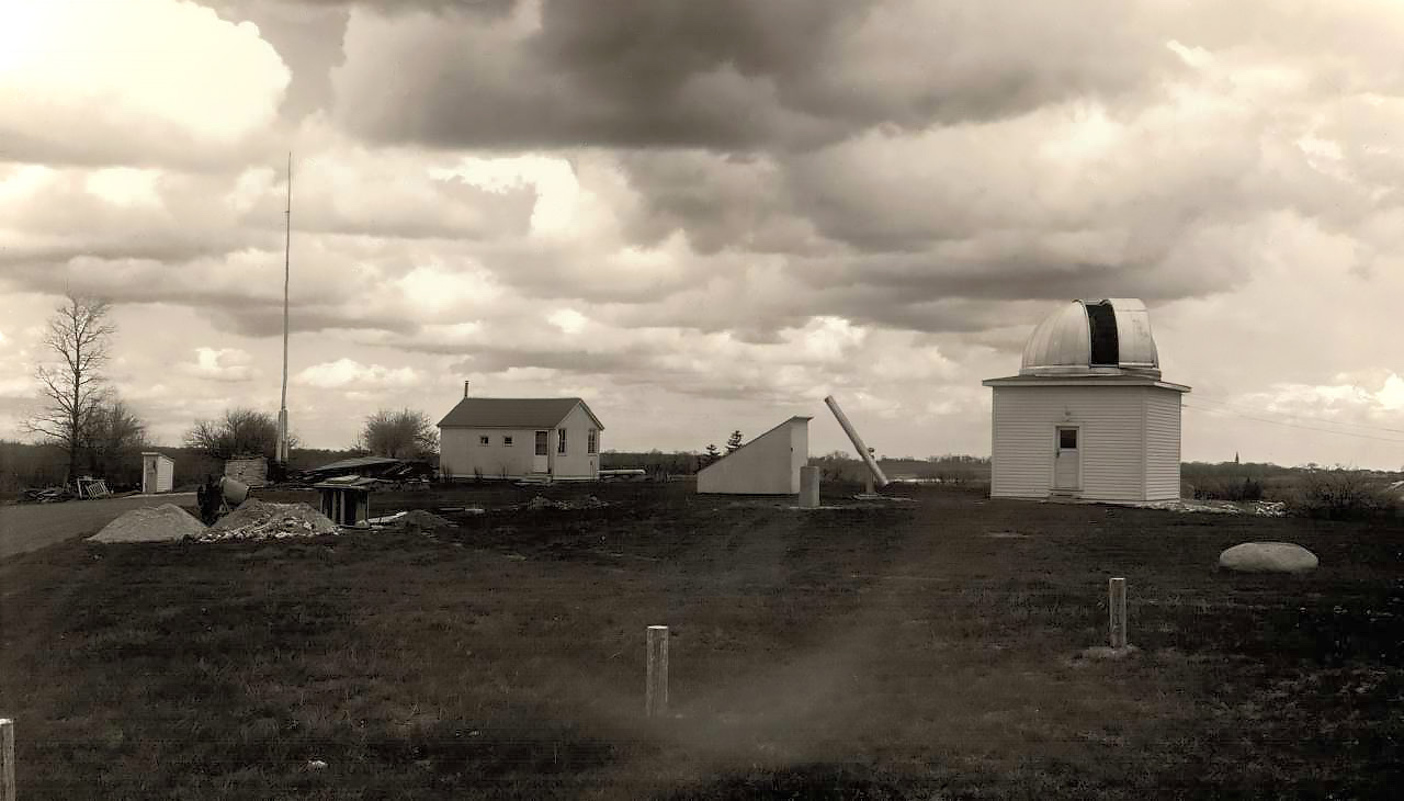 The above aerial photo shows the grounds taken on Sept. 24th, 1938 and we call it our "Field of Dreams" shot because it shows that our observatory was built in the middle of a corn field.