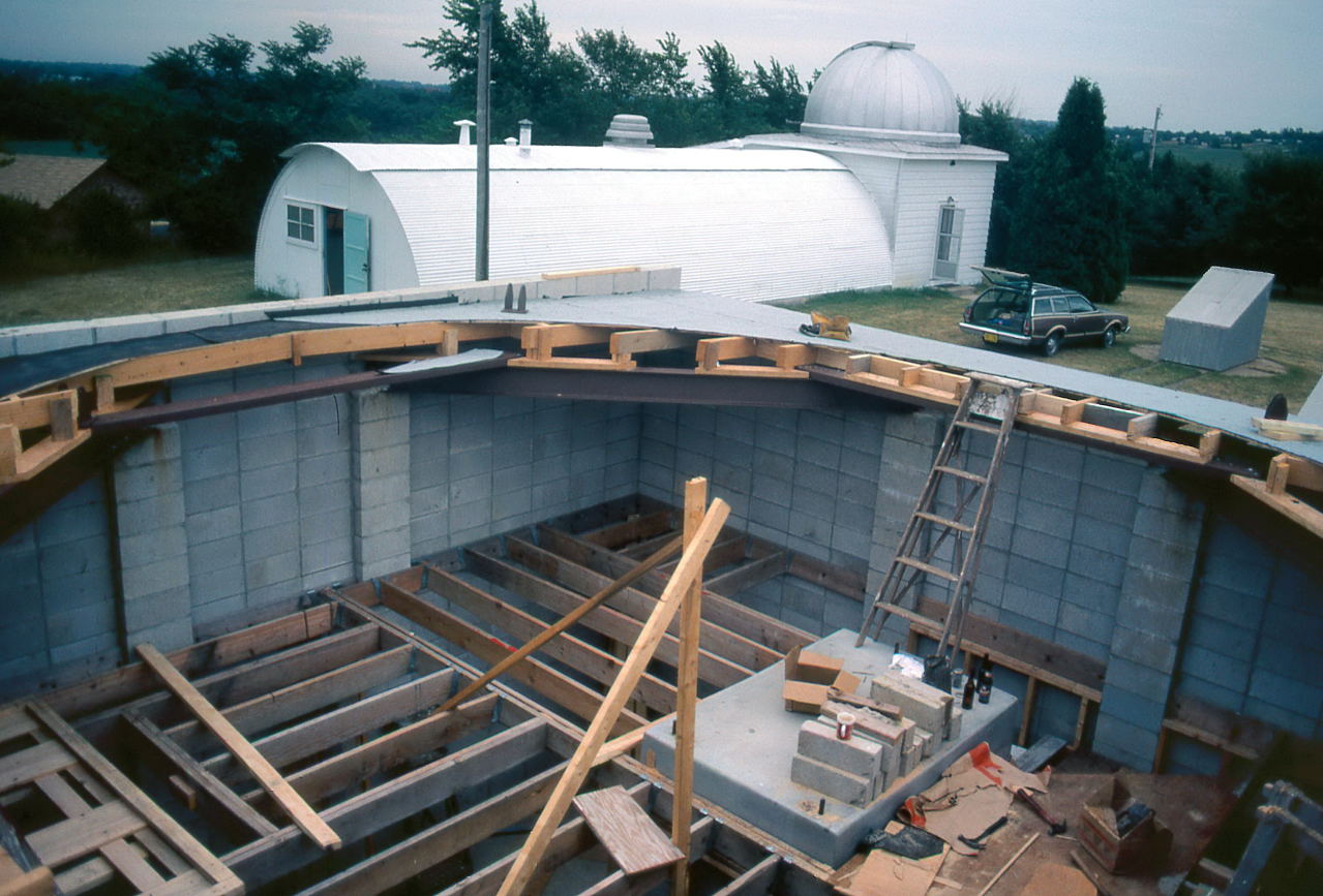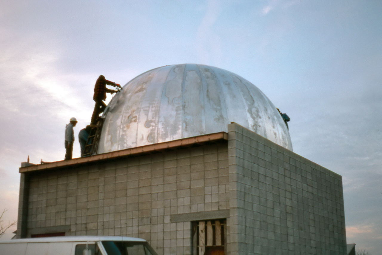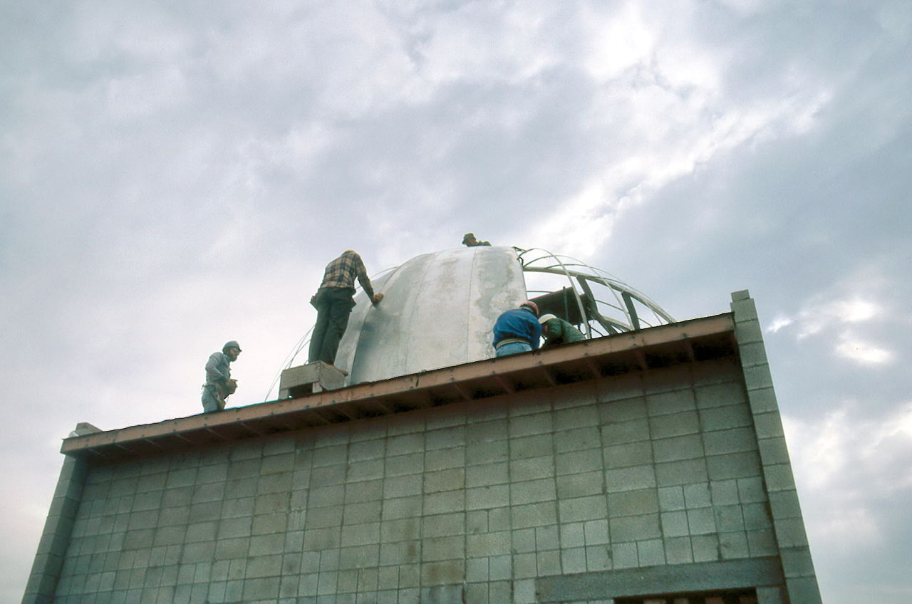 Historian Note: We have a lot of detail of the construction because of the participation of a handful of members who have given their first-hand accounts, two of those (John Aztalos and Jim Fanson) took many pictures, and because of decent entries made in the club log book. Much of the detail presented here are word for word entries from the Observatory Log Book.