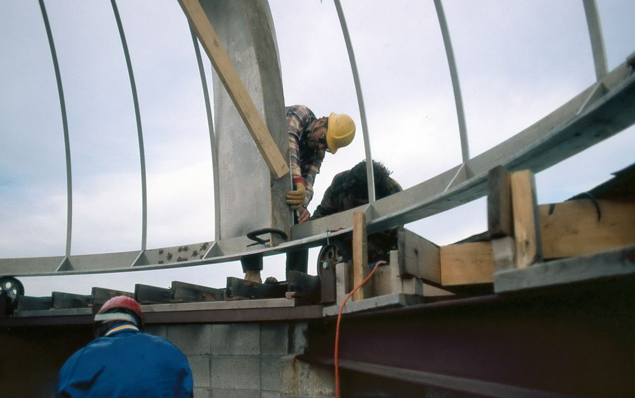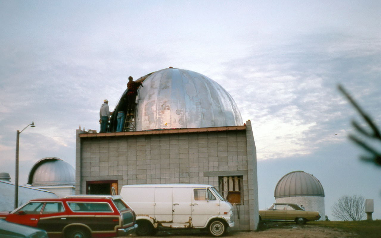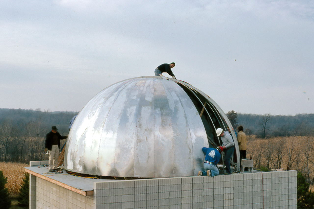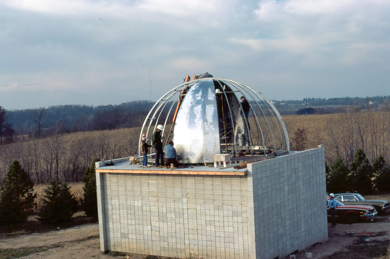 Historian Note: We have a lot of detail of the construction because of the participation of a handful of members who have given their first-hand accounts, two of those (John Aztalos and Jim Fanson) took many pictures, and because of decent entries made in the club log book. Much of the detail presented here are word for word entries from the Observatory Log Book.