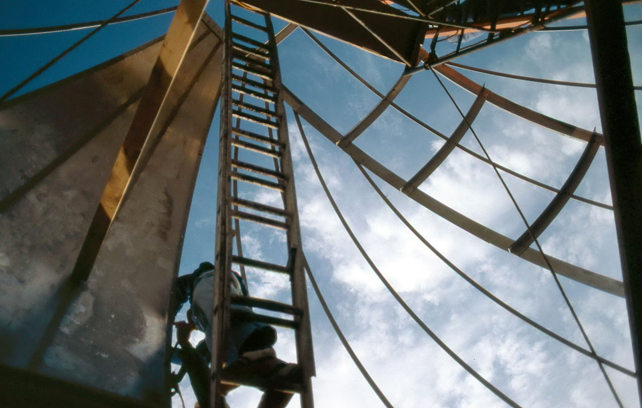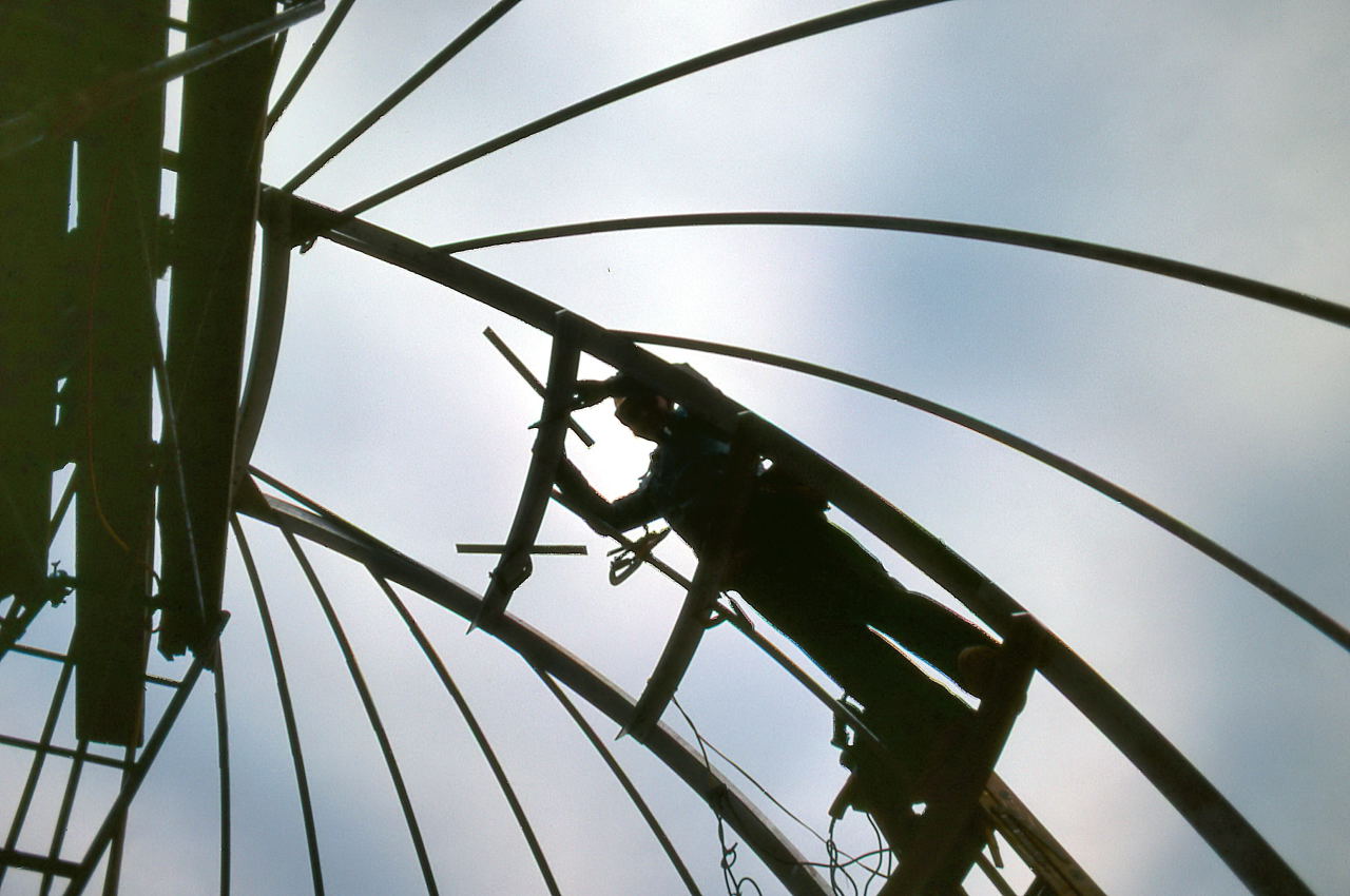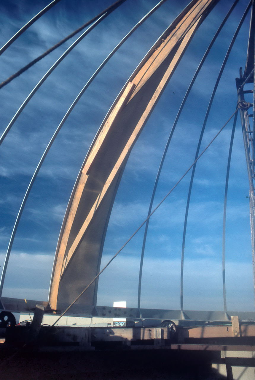 Finally, Samolyk was not going to have the luxury of building the dome in a nice climate controlled (and especially wind controlled) warehouse. We could make the pieces of the dome on terra firma, but all of the assembly would have to done in place. Though Bill Albrecht claimed he sneakily designed the Delco dome in 3 pieces so it would be moved one day to the MAS, the fact was that it was being built in a warehouse in downtown Milwaukee and then had to be transported to Oak Creek.