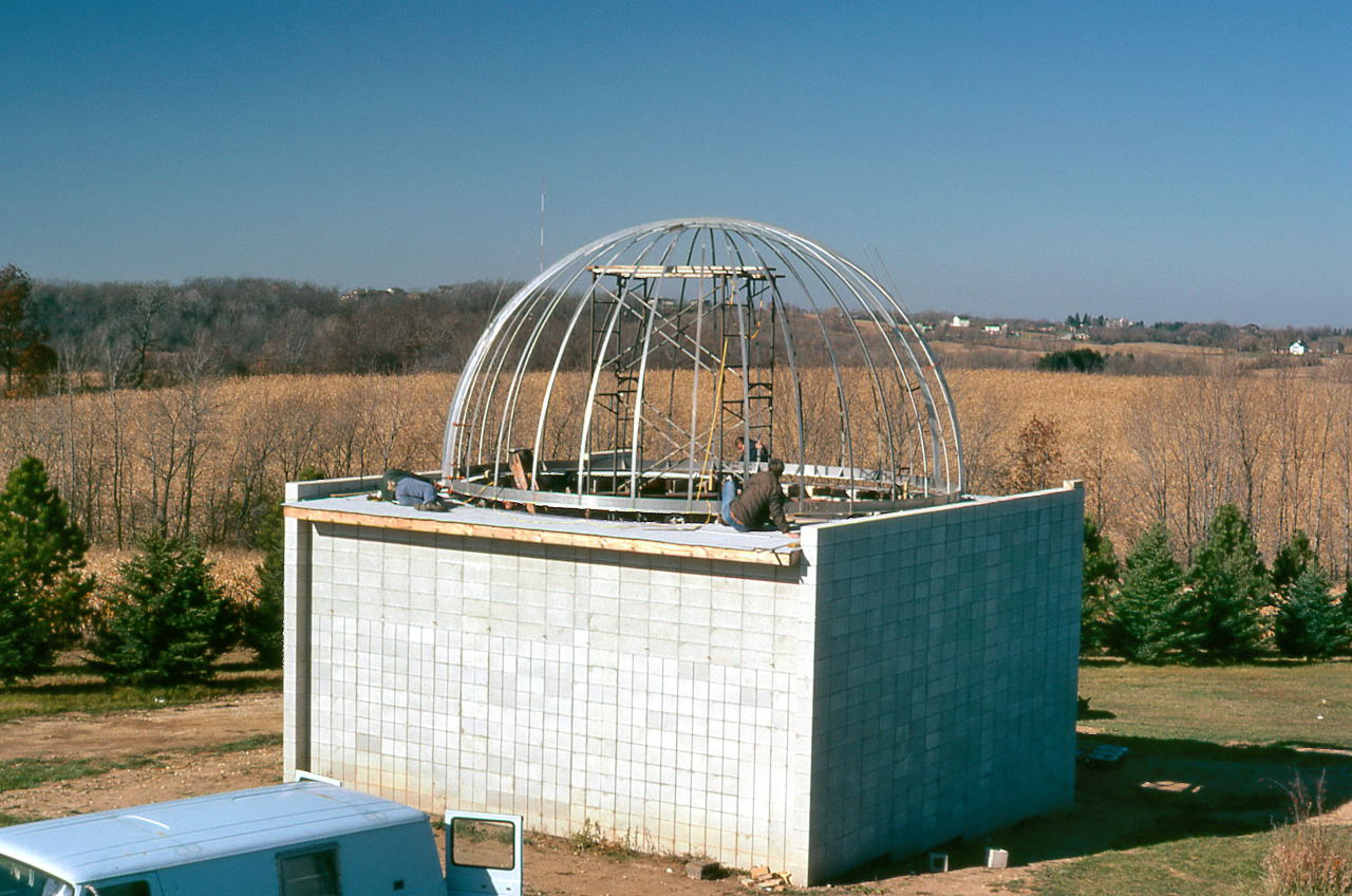 It wasn't as if the club didn't have some experience with dome building. We designed the A-Dome, but we had major help by having professional welders assemble it. For the B-Dome we took a major shortcut by getting a farm silo dome and having that company modify it. We then had to make a slit cover and we went with a retractable one which we will have over 10 years of difficulty making it work properly. Furthermore, these were just 14 foot domes and all the personnel involved in those projects were no longer there in Milwaukee. And the needed 22 foot dome was 2.5 times the area of the 14 foot domes.