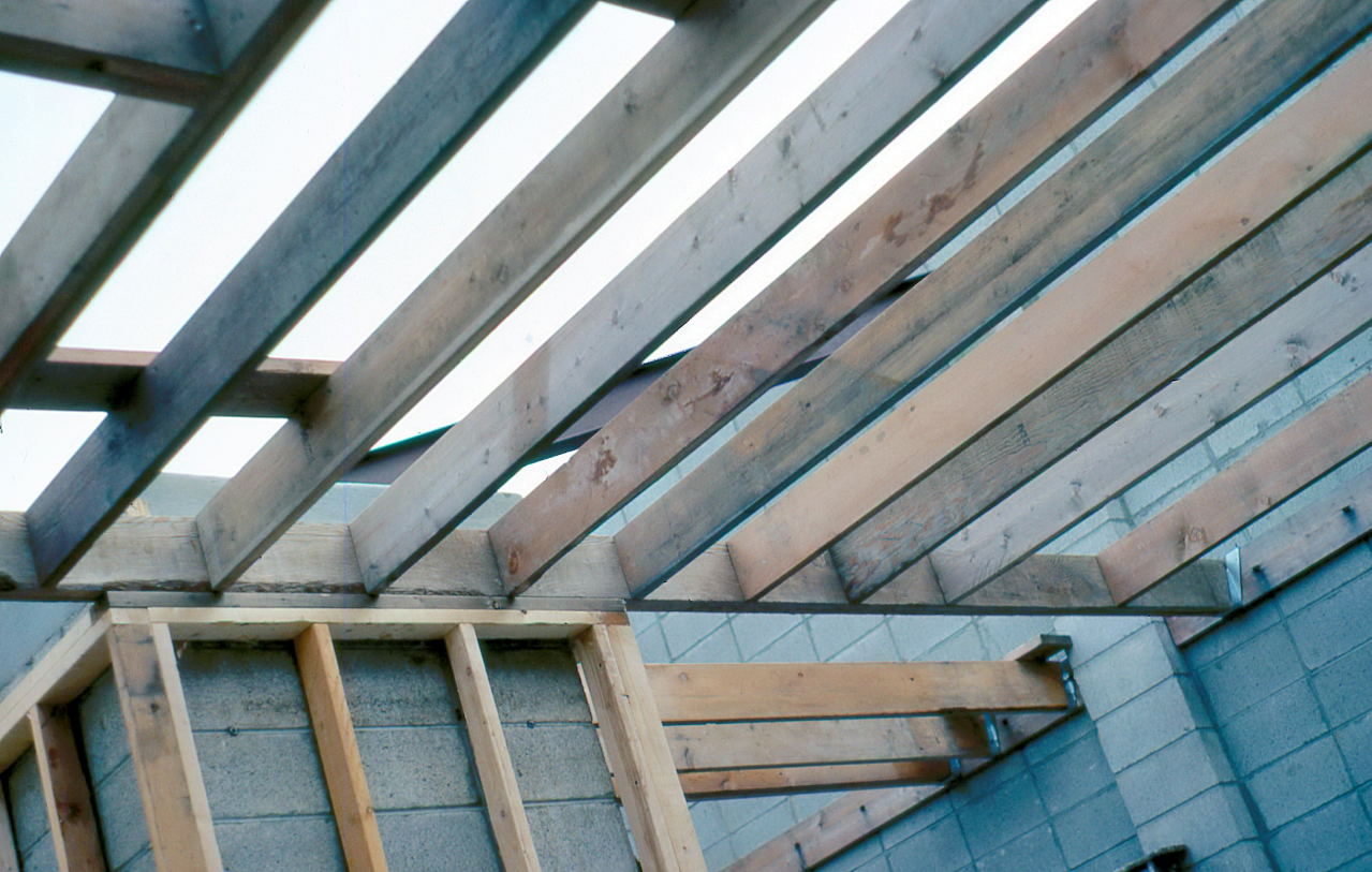Jul 4 Samolyk, Hesseltine, Zych: Work on roof rafters.