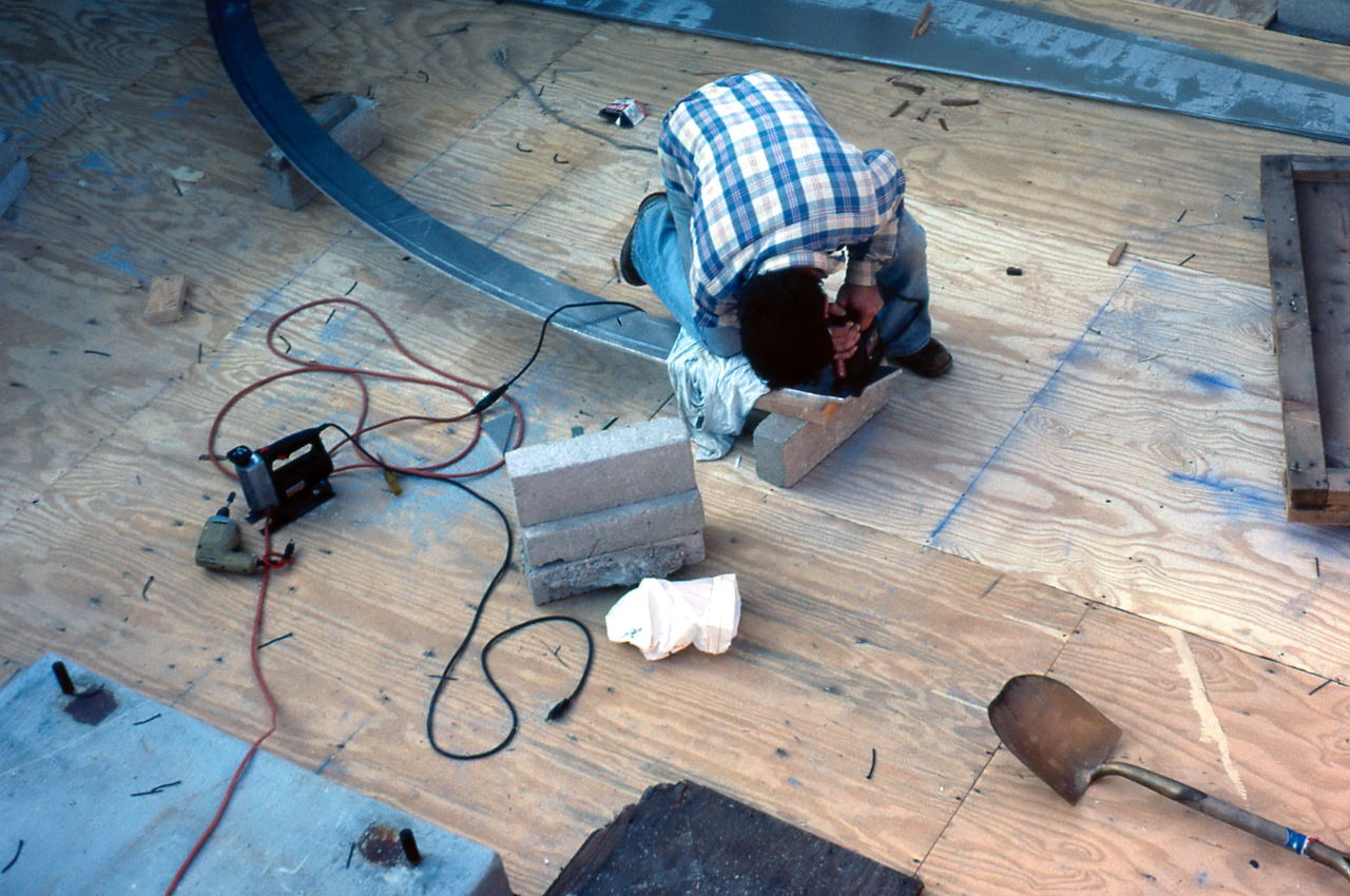 Jul 1 Samolyk, Asztalos, Hanson: Installed third I-Beam. Filled 2 pilasters.