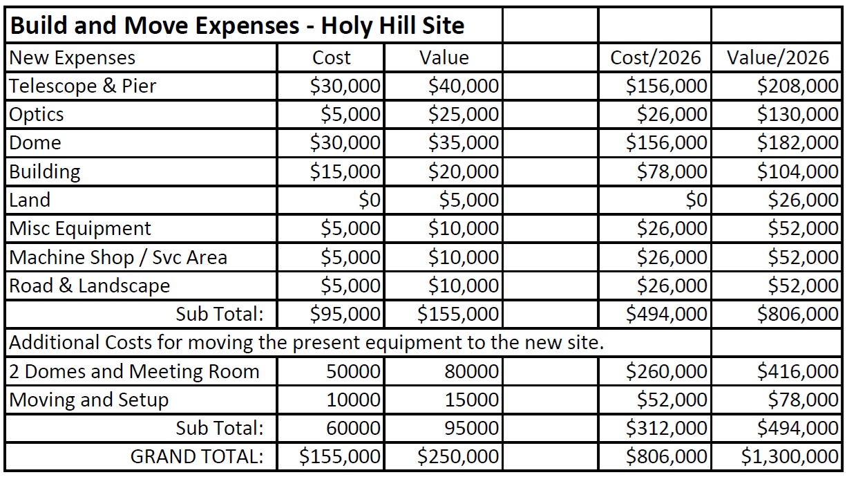As you can see the needed funds were outrageously high: in 2026 dollars, $494,000 to just build a single observatory, $806,000 to build and completely move the New Berlin observatory. So there was little chance that they could raise even a fraction of the amount needed.