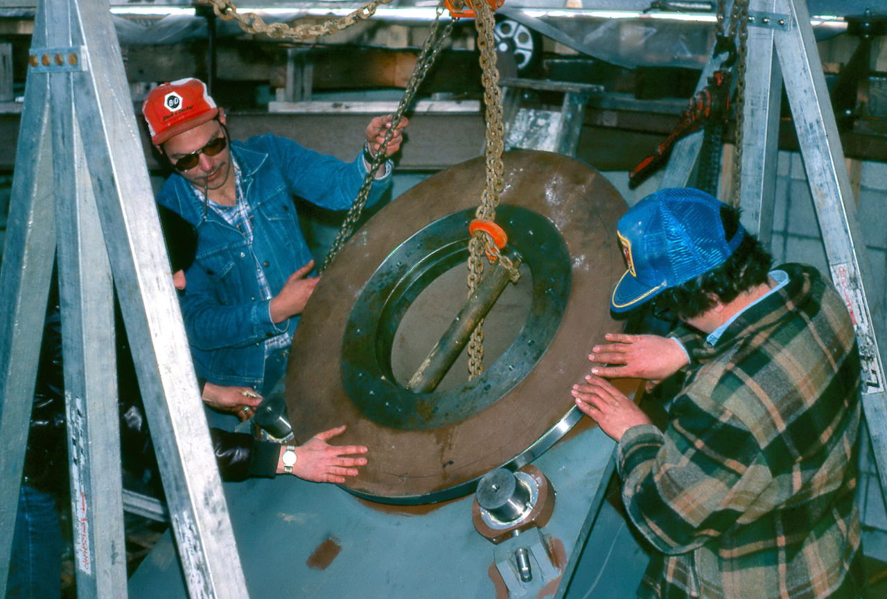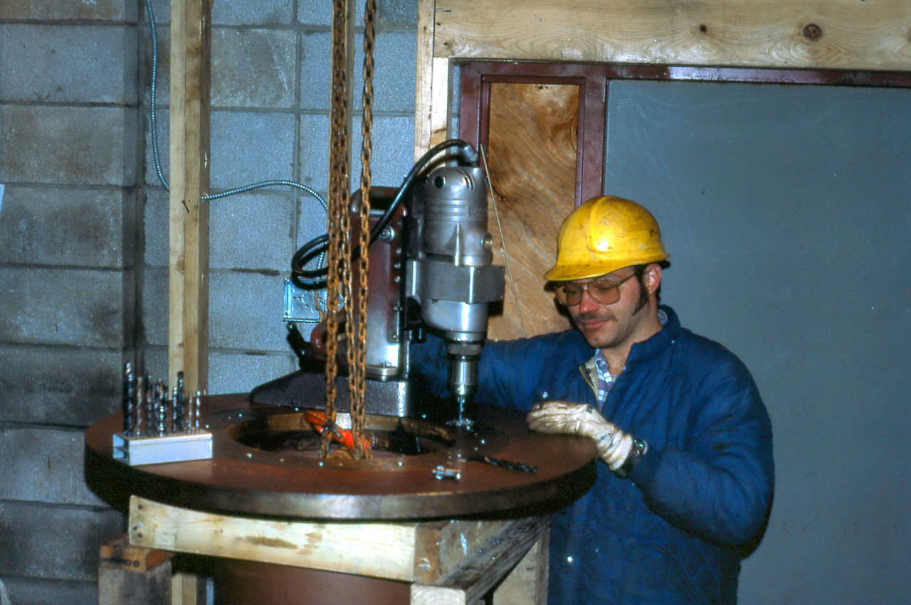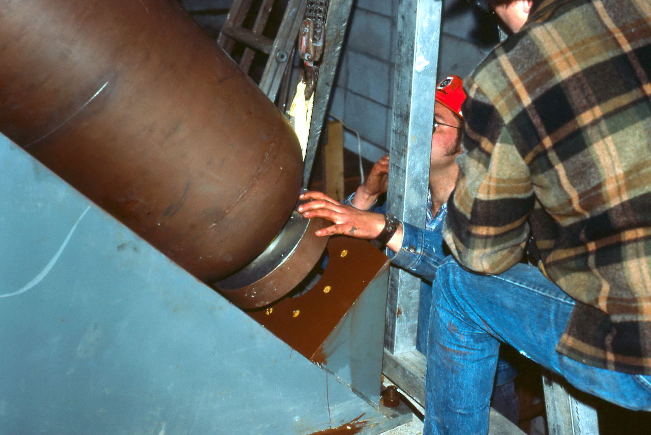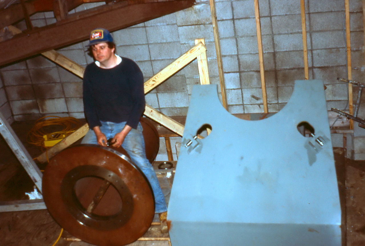 May With the mount base installed and the fork delivered, machining for the other parts goes into high gear. They need to machine the polar axis and produce the myriad of pieces needed for the mirror cell, most of these done by Paul Borchardt who was a professional machinest.