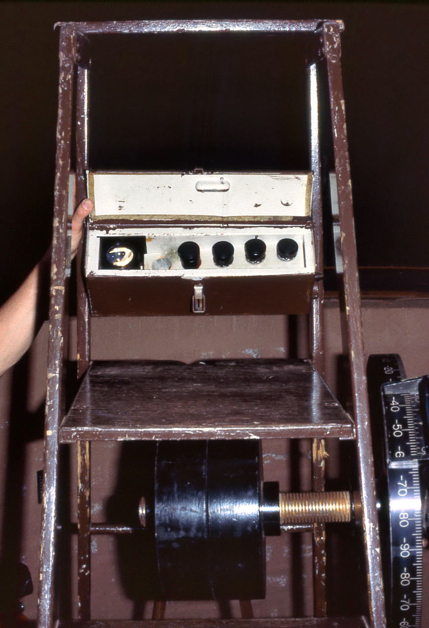 The picture at the right shows Joe with his homemade reflector in an era when commercial instruments were few and even fewer could afford one